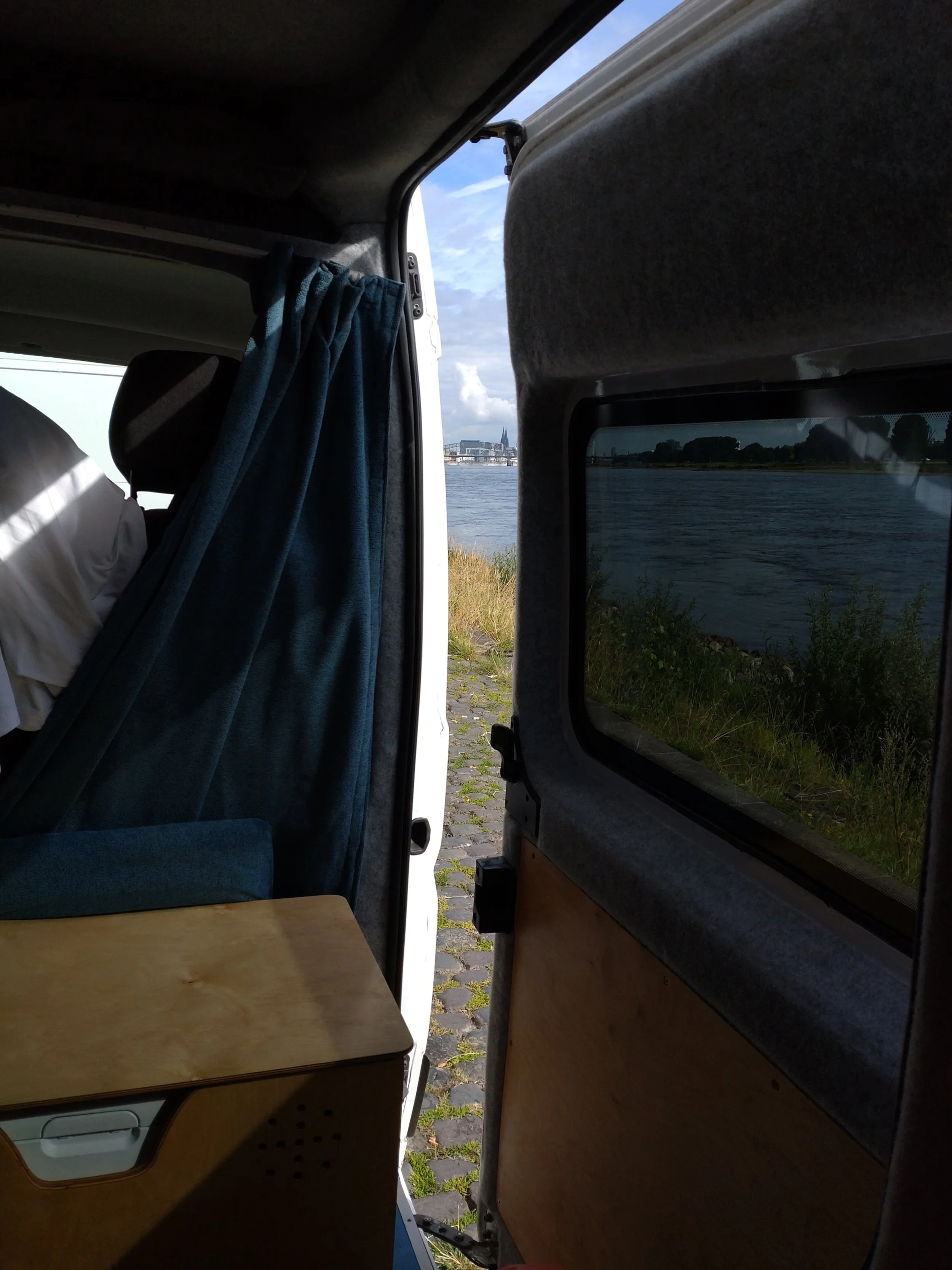 Es war ein super langer Tag, aber wir waren dann um 23h müde, mit Sushi vom Rewe am Rhein in Rodenkirchen! Wir hätten theoretisch noch eine Nacht in der Wohnung verbringen können, aber es war so geil, dass alles im Bus drin war, so dass man zu Hause sowieso nicht gut geschlafen hätte, wie vor einem Flug in den Urlaub. Daher haben wir eine Nacht mit Domblick am Rhein verbracht. Jetzt gehts los!!! Bleibt dabei! Weiter geht es jetzt in den Süden, wir besuchen heute noch eine schöne Kletterhalle auf dem Weg nach Freiburg, wo wir morgen bei Anjas Vater sind, wo wir einige Surfsachen lagern und ein paar von Anjas Verwandten besuchen. Am Freitag sind wir dann im Ötztal auf dem Campingplatz mit Tanja, Levi, Schroddi, Laura und Aljoscha! 😎