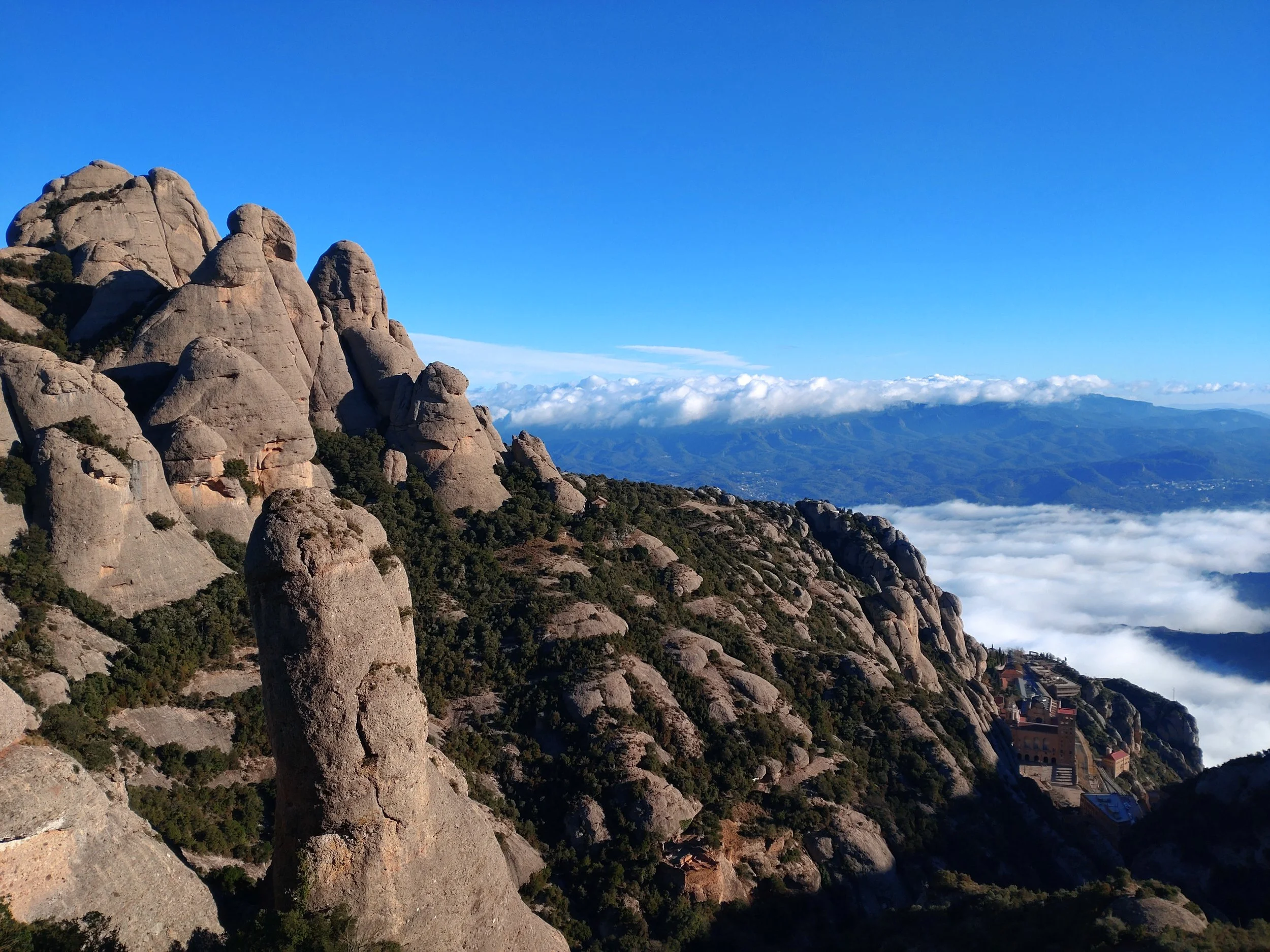 Wir planten eine gute Strecke zu fahren, um oberhalb von Barcelona einen Klettersteig am Meer zu machen. Allerdings hatten wir eine tolle Begegnung mit einem Bergmassiv, was wir von der Autobahn aus gesehen haben und was uns unglaublich von seiner Kulisse beeindruckt hat. Von der Ferne sah es zerklüftet und felsig aus, von der Nähe waren es eindrucksvolle Stehlen und riesige steile Wände, alles aus Konglomeratgestein, wir wie es aus der Eifel in Nideggen kennen, nur in XXXL: Montserrat!
