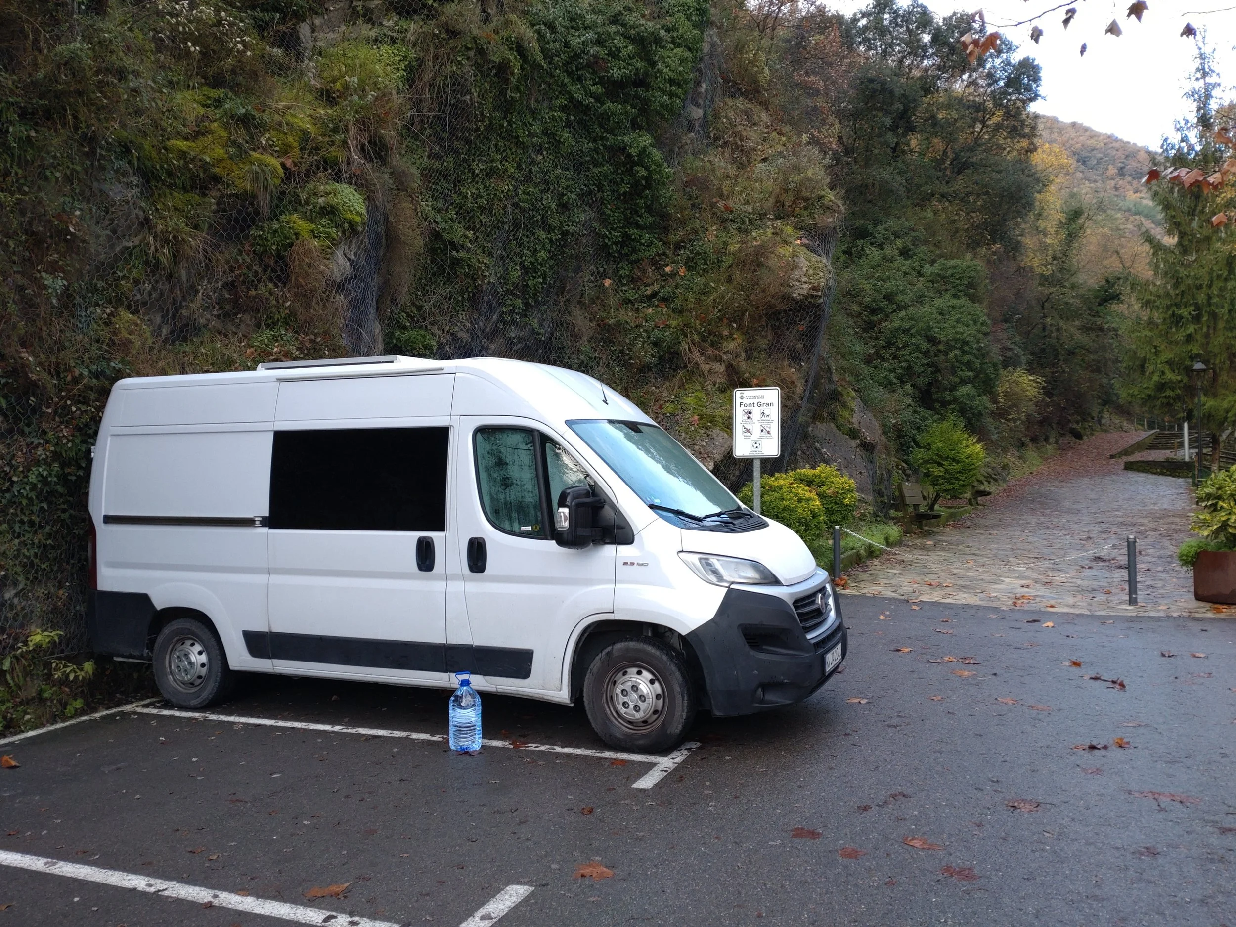 Am Tag drauf haben wir eine warme Quelle mit einer Therme in den Pyrenäen besucht. Es war ein sehr angenehmes Baden im Schwefelwasser, nachdem wir aufgrund der Kälte einige Tage nicht geduscht/bzw. Haare gewaschen hatten. Ein wunderbares Gefühl, allerding lud die Therme nicht unbedingt zum taglangen Bleiben ein, es gab so gut wie keine Liegen, sondern wirklich nur Becken, Duschen und Umkleiden. Also entschieden wir uns weiter Richtung Norden zu fahren, tolle Blicke hatten wir noch auf die Pyrenäen, wo wir schon erste Schneegipfel sehen konnten. Nach einem weiteren Tag wurden die raureifbedeckten Bäume in Frankreich mehr, je näher wir am 11.12. Freiburg kamen. Dort war es bitterlich kalt. Wir haben uns noch in einer Boulderhalle ausgetobt nach dem bewegungsarmen Tag im Auto. Die Standheizung durfte nachts bei -6 Grad mal richtig ihre Dienste zeigen! Sehr unwirklich nach so warmen Tagen in Südspanien vor einer Woche. Nun nimmt unsere lange Reise ein Ende. Wir hätten beide länger weiterfahren können, allerdings freuen wir uns nun unsere Familien und Freunde in Köln wiedersehen zu können! 😊 In den Fotos noch ein paar Impressionen unserer Reise von den Pyrenäen bis nach Freiburg, inklusive der geknackten 10000km Marke, sowie einer Übersicht unseres Busklimas während des ganzen halben Jahres. Da zeigt sich, dass unsere Dämmung (und auch die Heizung) einiges dazu beigetragen hat, dass es jetzt am Ende und hoch in den Alpen nie unter 6,9 Grad kalt wurde. Wer im Nachhinein den genauen Verlauf unserer Reise sehen möchte, kann das hier nochmal nachvollziehen! :)