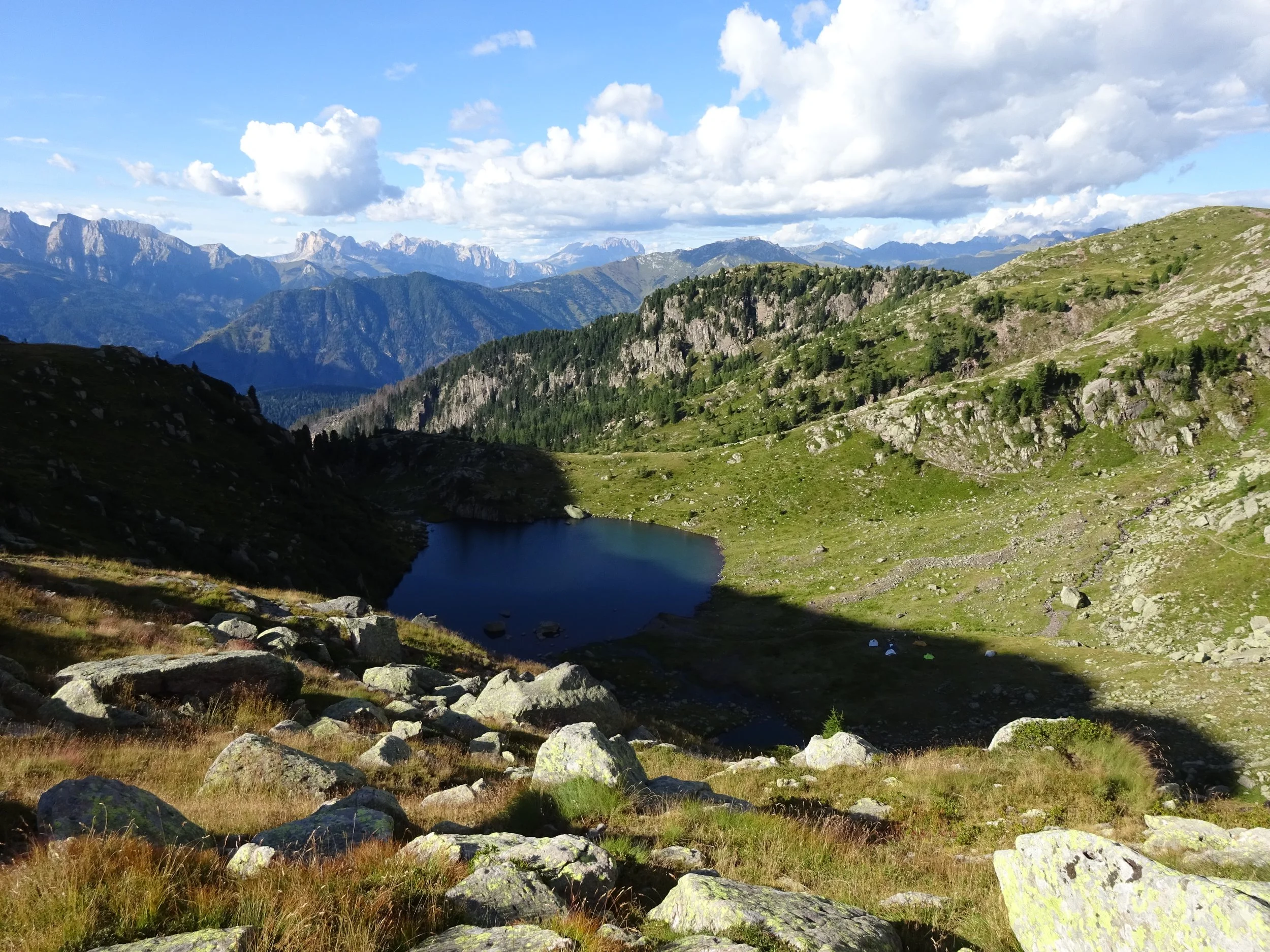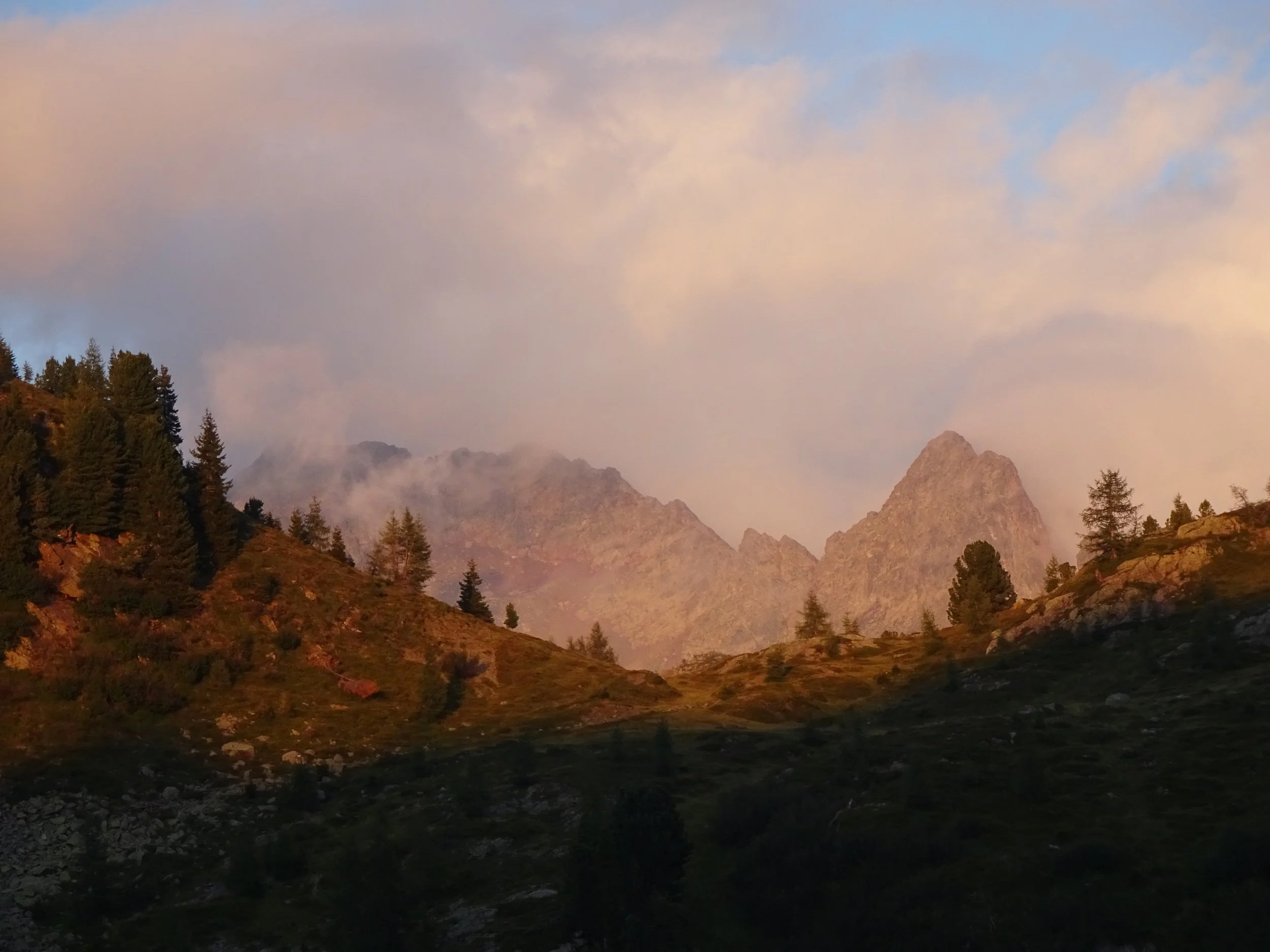 Constantijn und ich sind gut in Predazzo angekommen und hatten einen ersten groben Plan entworfen. Proviant hatten wir für komplette 6 Tage dabei, also zwei große Rucksäcke mit annähernd 18kg. Überall auf den Wegen im Gebirge in der Lagoraikette sind Biwaks, mal besser, mal schlechter ausgestattet, in denen man kostenlos übernachten kann. Die Lagoraikette ist südlich der Dolomiten in Italien und ist im Gegensatz zu den Dolomiten von vielen Quellen und vielen grünen Wiesen und tollen Seen durchsetzt. Das klang nach genau dem richtigen Abenteuer! Wir hatten zur Sicherheit ein Tarp, Isomatte, sowie Schlafsäcke und Hüttenschlafsack dabei, damit man auf alle Biwakausrüstungen und sogar zur Not eine Draußenübernachtung gefasst war. Zusätzlich zu Kocher, Trockennahrung hatte ich noch einen Wasserfilter eingepackt.